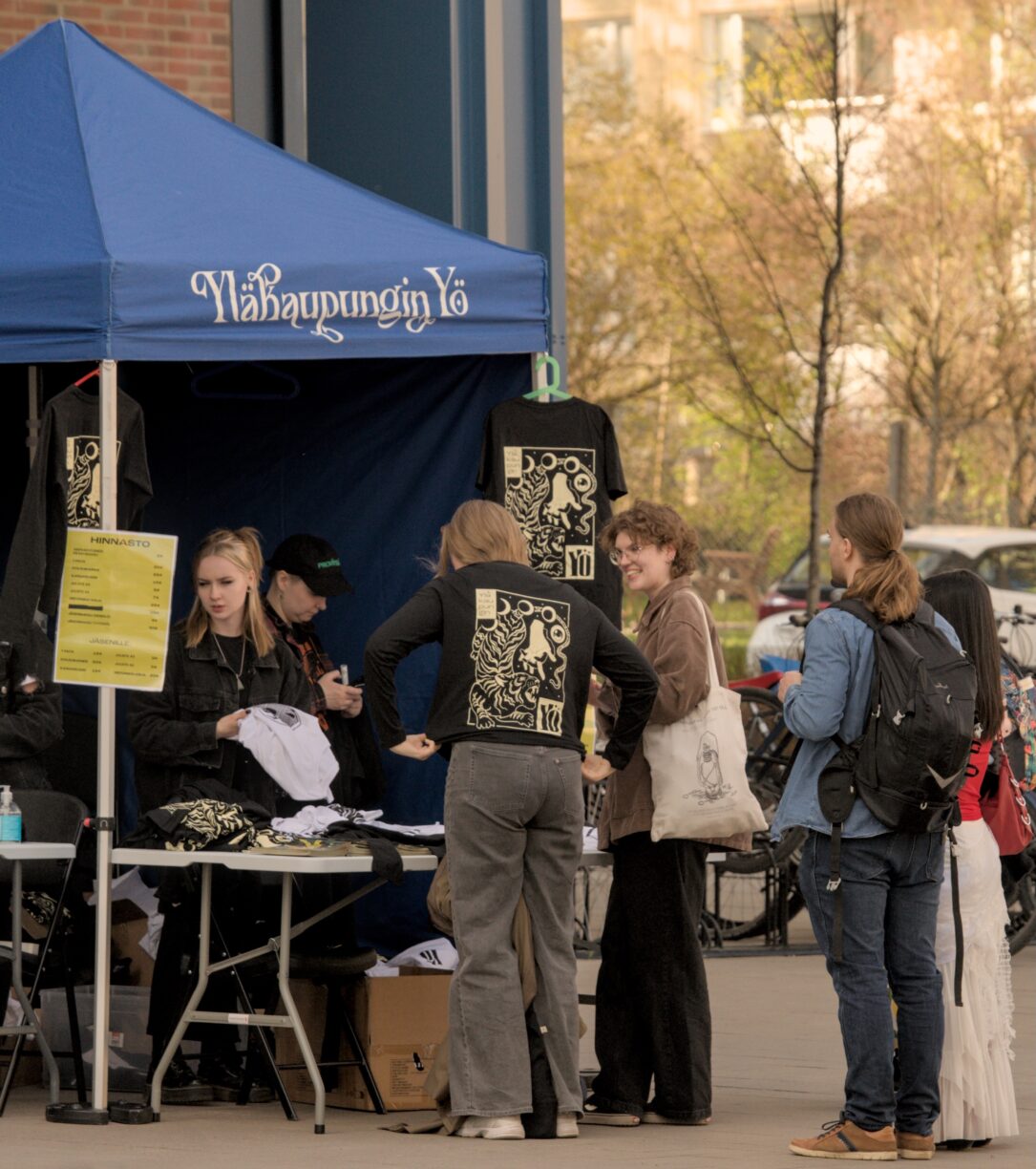 Vapaaehtoisten ylläpitämän infoteltan merchandise-myynti / Kuva: Reko Rouvinen
