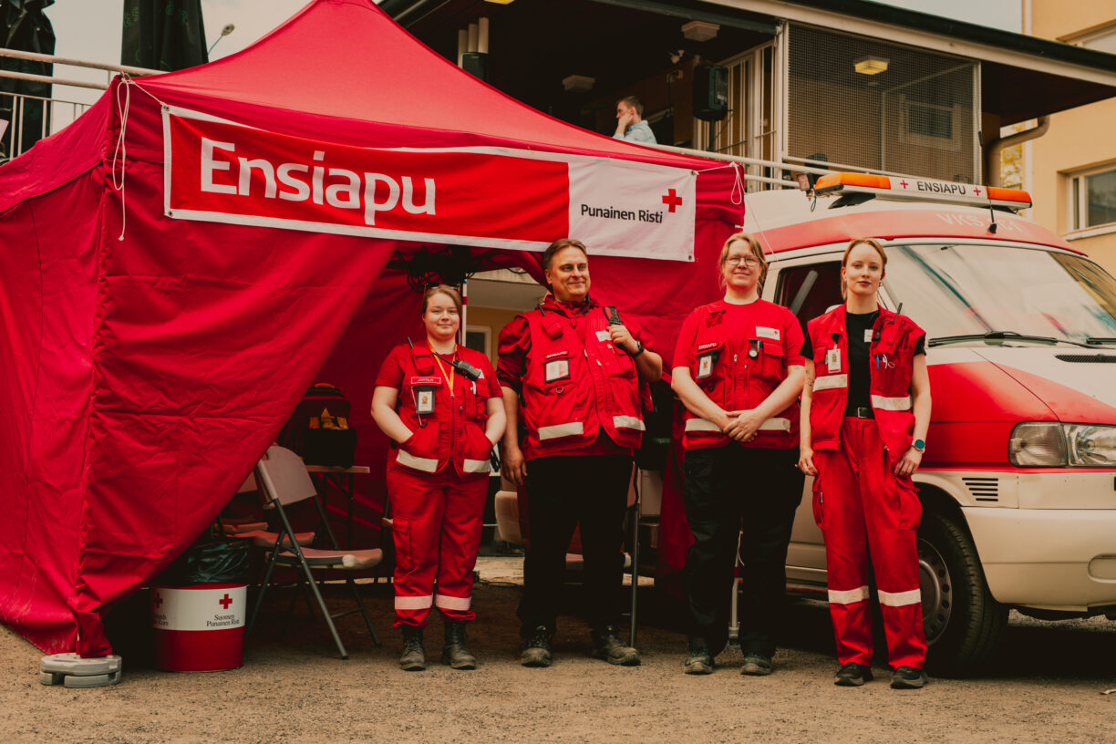 SPR:n ensiaputiimi teltallaan Lounaispuiston ylätasanteella / Kuva: Iitu Purhonen